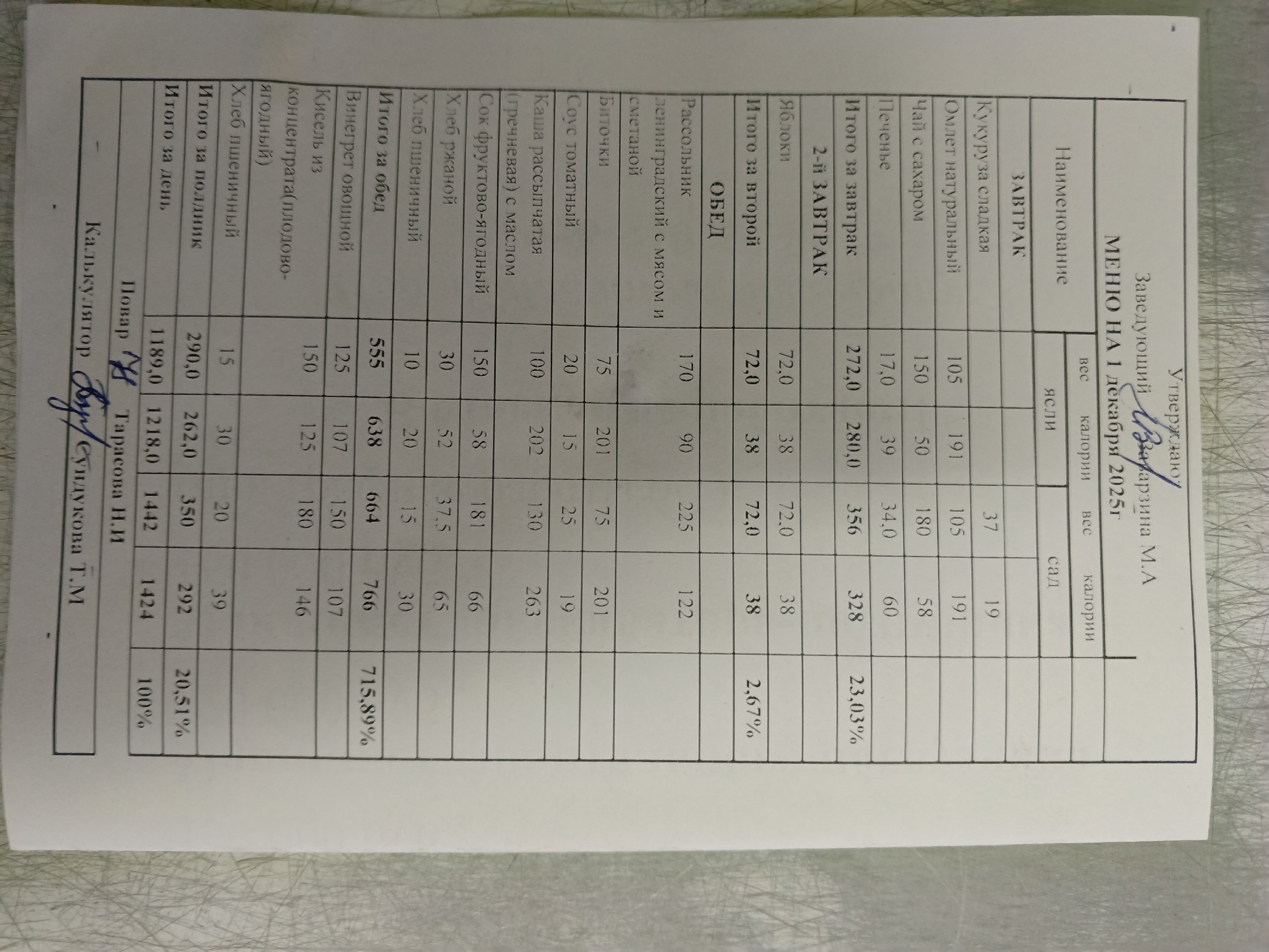 Ежедневное меню