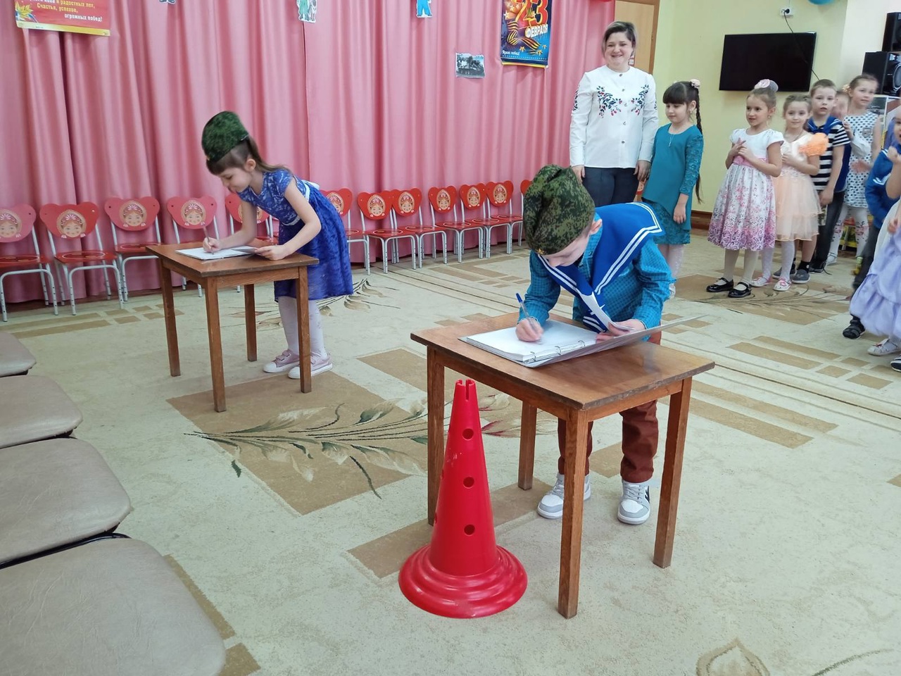 Праздник 23 февраля в детском саду – хороший повод для воспитания у дошкольников чувства патриотизма, сопричастности к лучшим традициям своей Родины, формирования у детей гордости за славных защитников Отечества. Это праздник настоящих мужчин — смелых и отважных, ловких и надёжных, а также праздник мальчиков, которые вырастут и станут защитниками Отечества, а пока мы знакомим детей и рассказываем, что такое армия, почему 23 февраля — День Защитника Отечества. Воспитываем уважительное отношение к военному человеку, человеку в форме, прививаем любовь к Родине, и развиваем патриотические чувства. Такие мероприятия, проведённые с детьми, закладывают в их душах зёрнышки патриотизма, чувства долга перед Родиной.