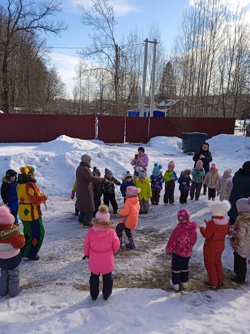 Традиционно на празднике мы провожали зиму и встречали Весну. Зима не хотела уступать место Весне. В этом споре победила Весна, и Зиме пришлось уйти. Все с радостью проводили ее и попрощались с ней до следующего года.