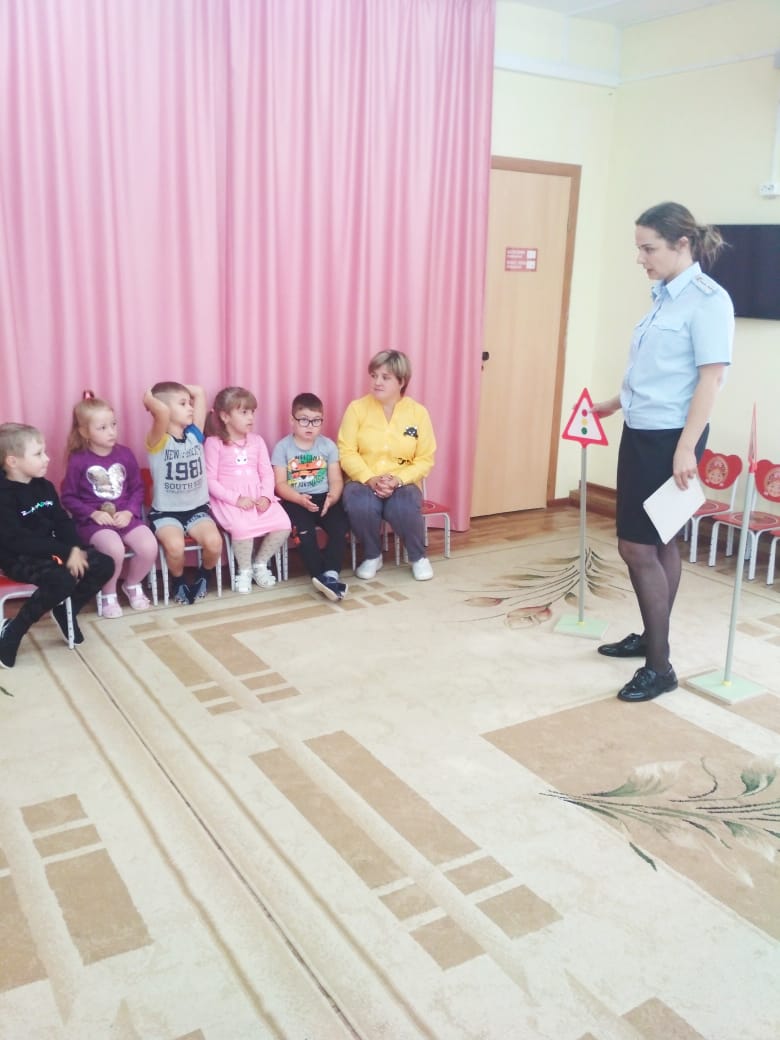 6 сентября в нашем детском саду прошла встреча подготовительной группы с инспектором Корниловой Татьяной Владимировной по поводу безопасности дорожного движения. Ребята с большим удовольствием показали свои знания о дорожных знаках в игровой форме. Татьяна Михайловна рассказала очень много интересного для наших ребят: беседу на тему профилактики дорожно транспортного травматизма, рассказала о правилах безопасного поведения на улицах, рассмотрели с детьми дорожные знаки. Ребята с удовольствие и вниманием слушали инспектора. А напоследок Татьяна Владимировна пожелала детям быть осторожными, и внимательными на дорогах. Данное мероприятие является очередным в системе взаимодействия инспекторов ГИБДД и Детского сада № 6 по формированию у детей основ дорожной безопасности.