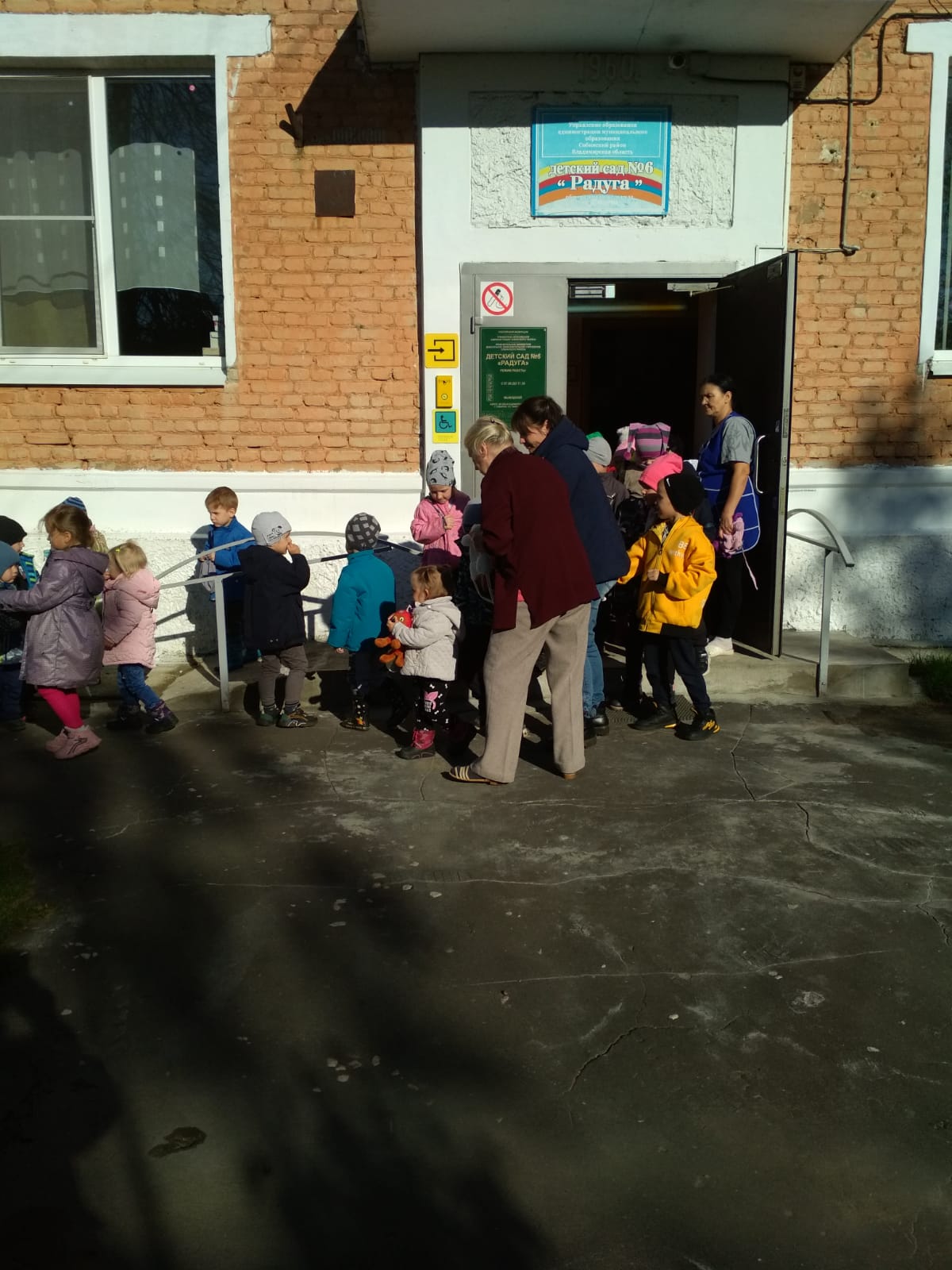 После сигнала громкого оповещения, мы вместе с ребятами осуществляли организованный выход в колонну по два человека через соответствующие выходы на территорию детского сада.