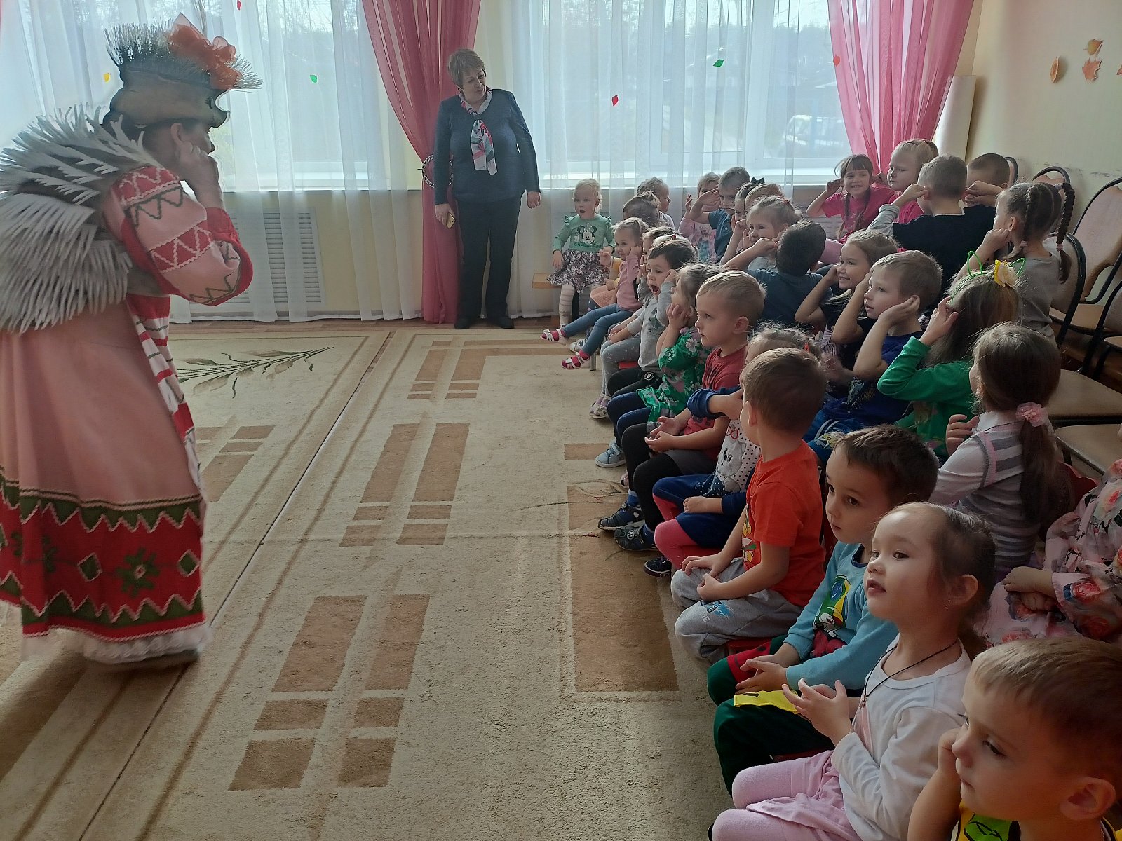 Сегодня к нас в сад приезжал Владимирский театр со спектаклем"Жадная ежиха". Ребятам очень понравился спектакль. Они с большим удовольствие помогали героям сказки в приключениях)))