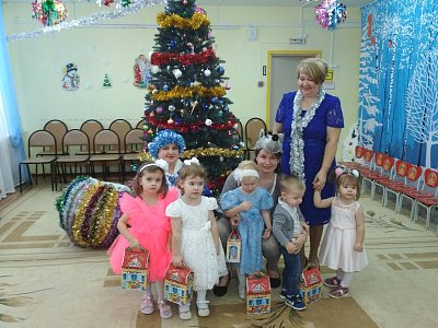 Сегодня у наших яслей прошел утренник. К ним приходила снегурочка, волчок и мишка. Ребят очень понравилось с ними играть, петь, танцевать. После праздника волчок всем раздал подарки.