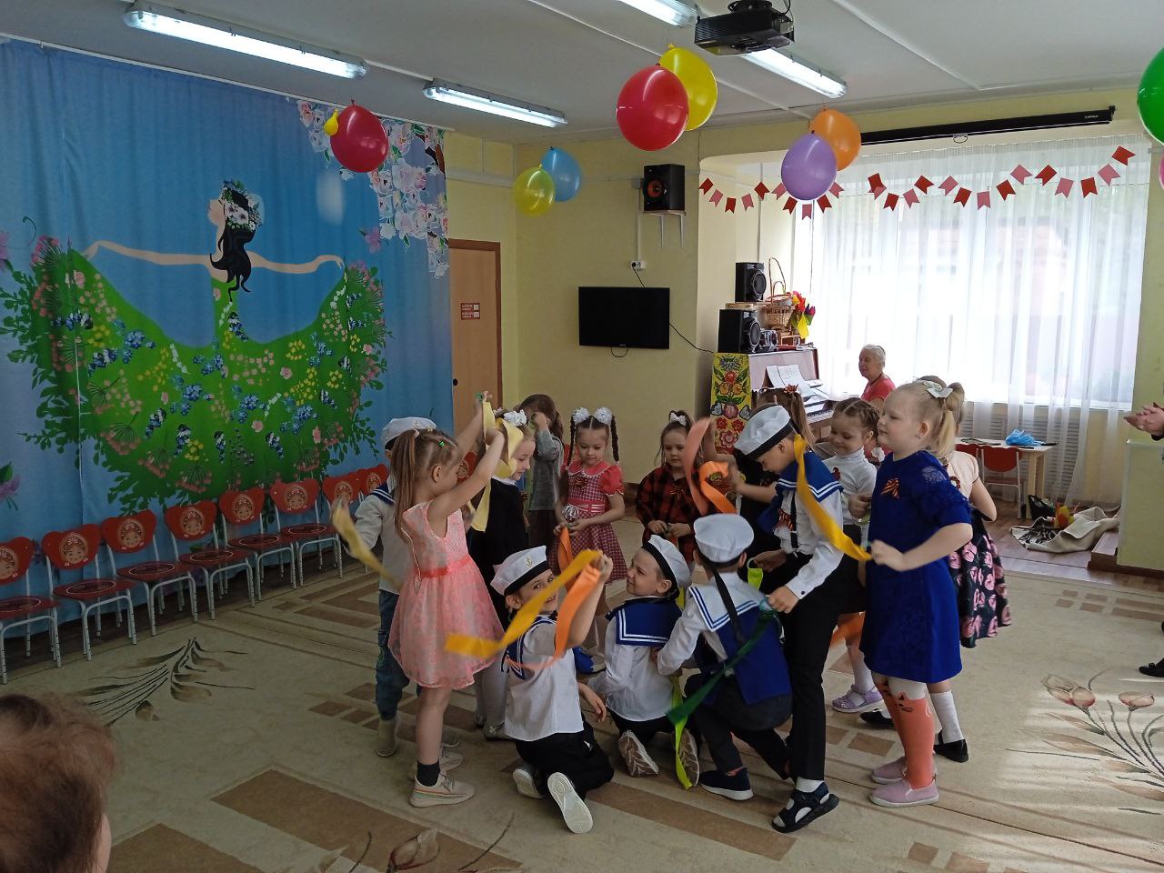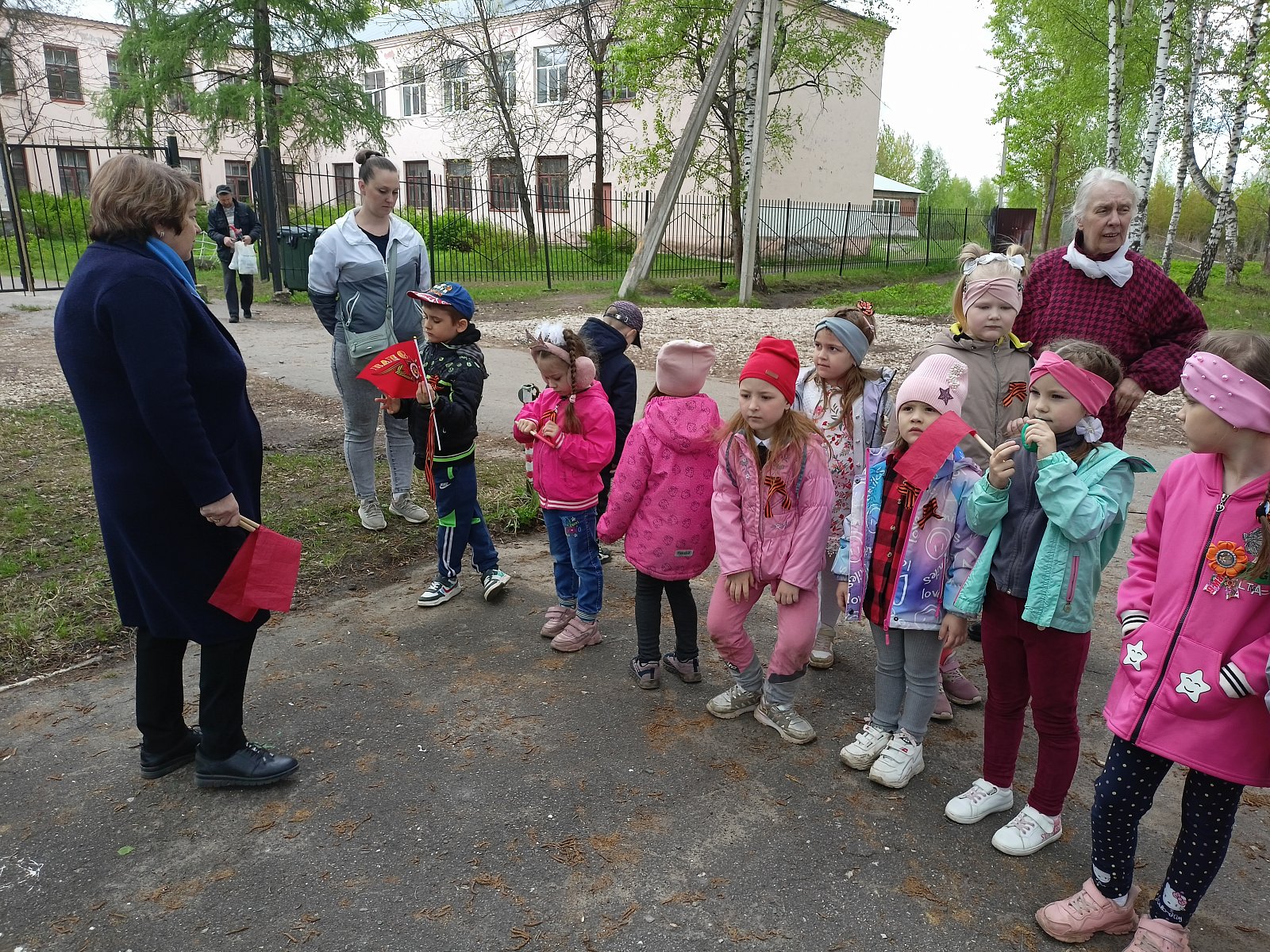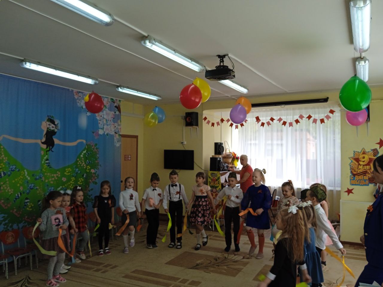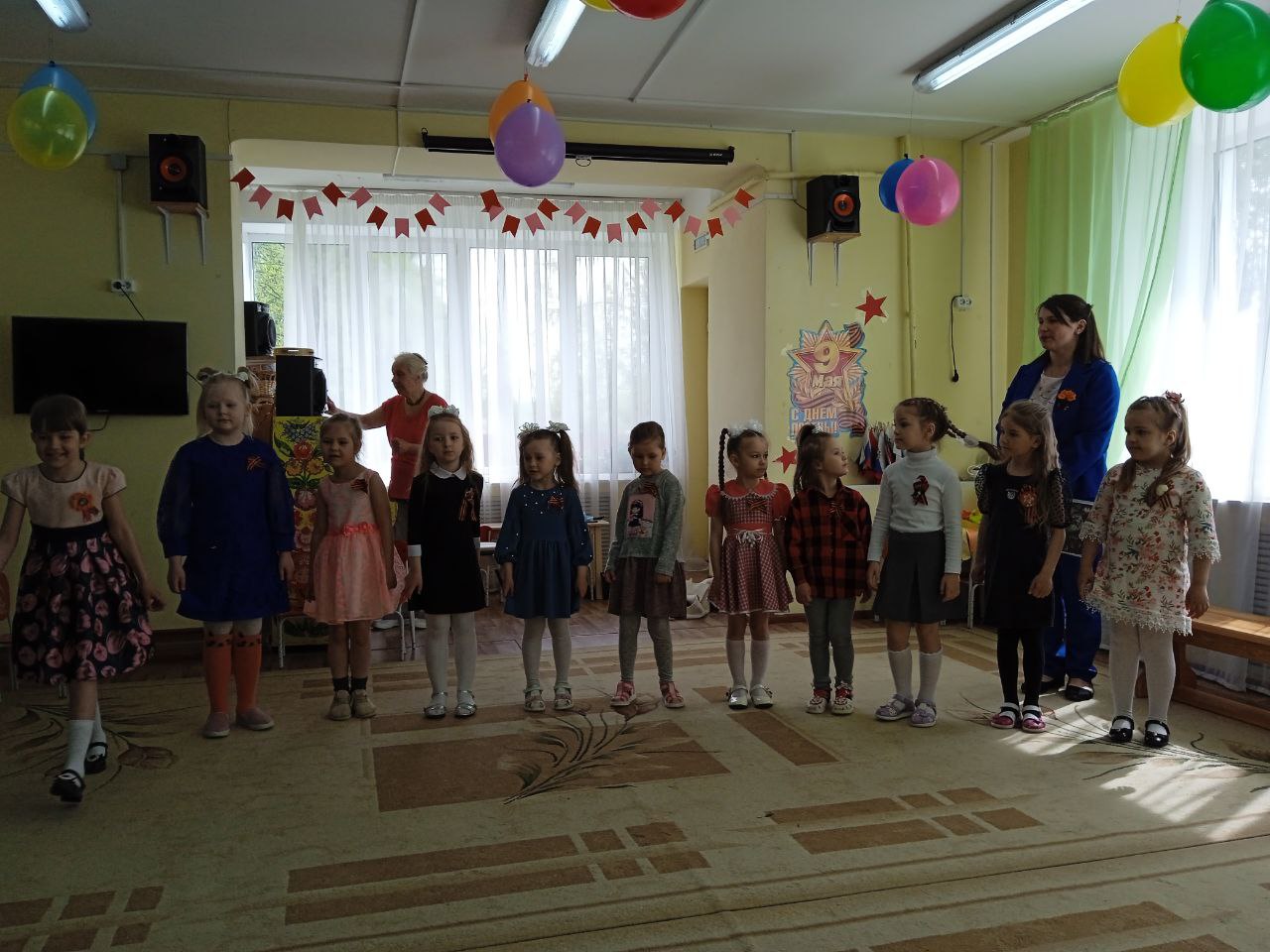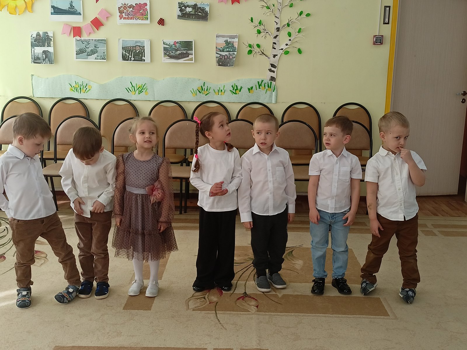 Сегодня в нашем детском саду прошли концерты на группа "Ягодка" и " Солнышко", посвящённые Дню Победы. Ребята пели песни, рассказывали стихотворения, танцевали танцы. После концерта группа " Солнышко" ходили к памятнику и возложили цветы нашим защитникам.