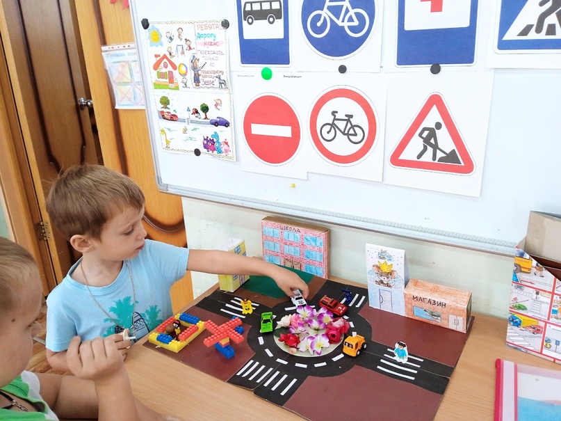 Также дети старшего дошкольного возраста ознакомились с ПДД с помощью макетов.