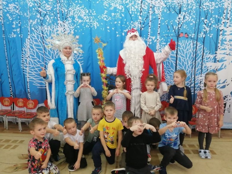 В конце представления ребят порадовало появление Деда Мороза и Снегурочки , которые помогли ребятам найти и собрать меч.