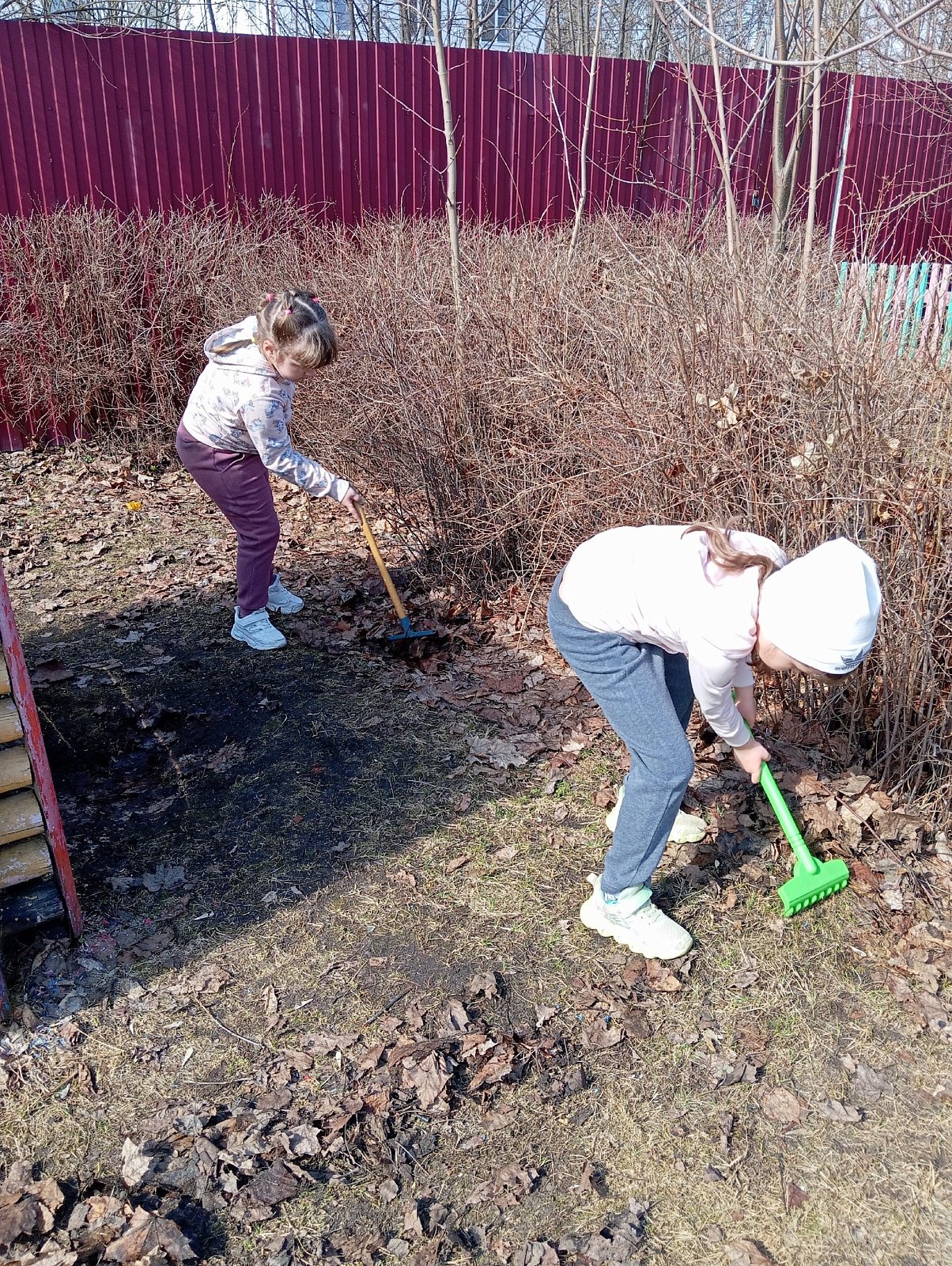 Весна - время пробуждения природы и пора наведения чистоты и порядка на участке детского сада. Дошколята старшей группы «Солнышко» работали дружно и с большим желанием быстро и активно убирали территорию своего участка от мусора и сухих листьев.