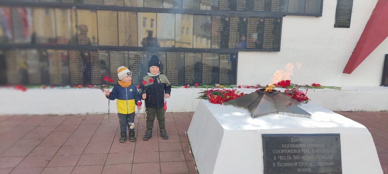 9 мая братья Крюковы Артём и Матвей возложили цветы к Вечному огню в память о погибших ВОВ