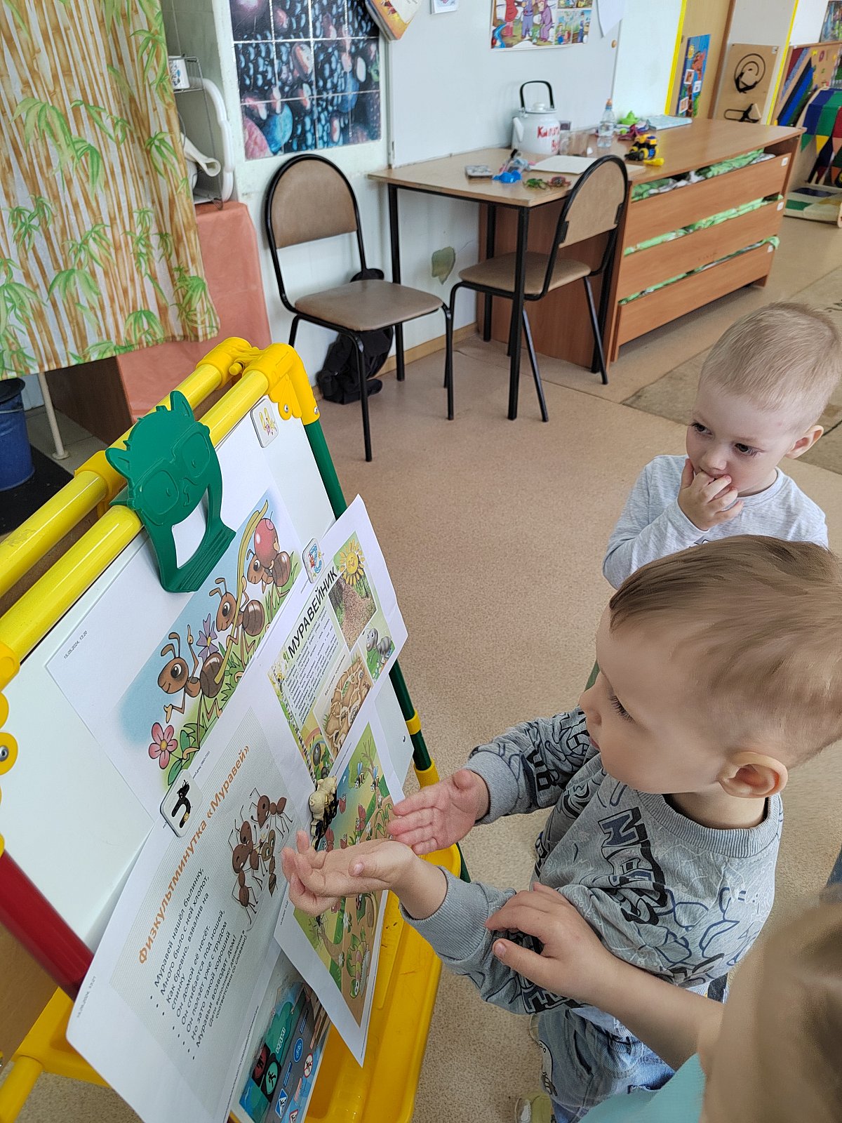 На прогулке продолжили знакомство с муравьями, воспитатель показала их и рассказала детям, какие они маленькие и трудолюбивые.