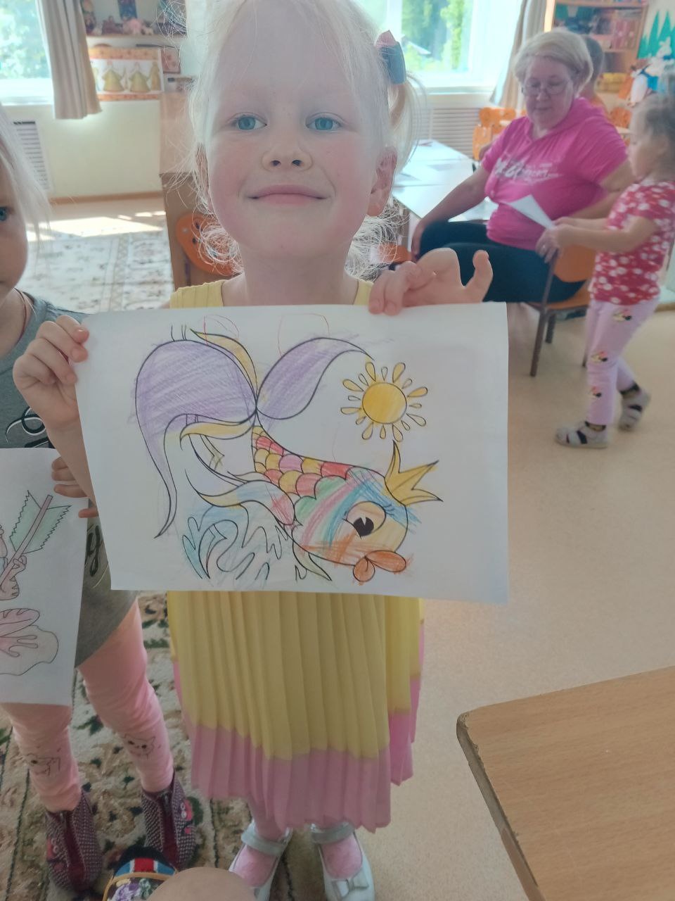 В заключении дети раскрасили золотую рыбку, которая им понравилась, которая исполняет желания.