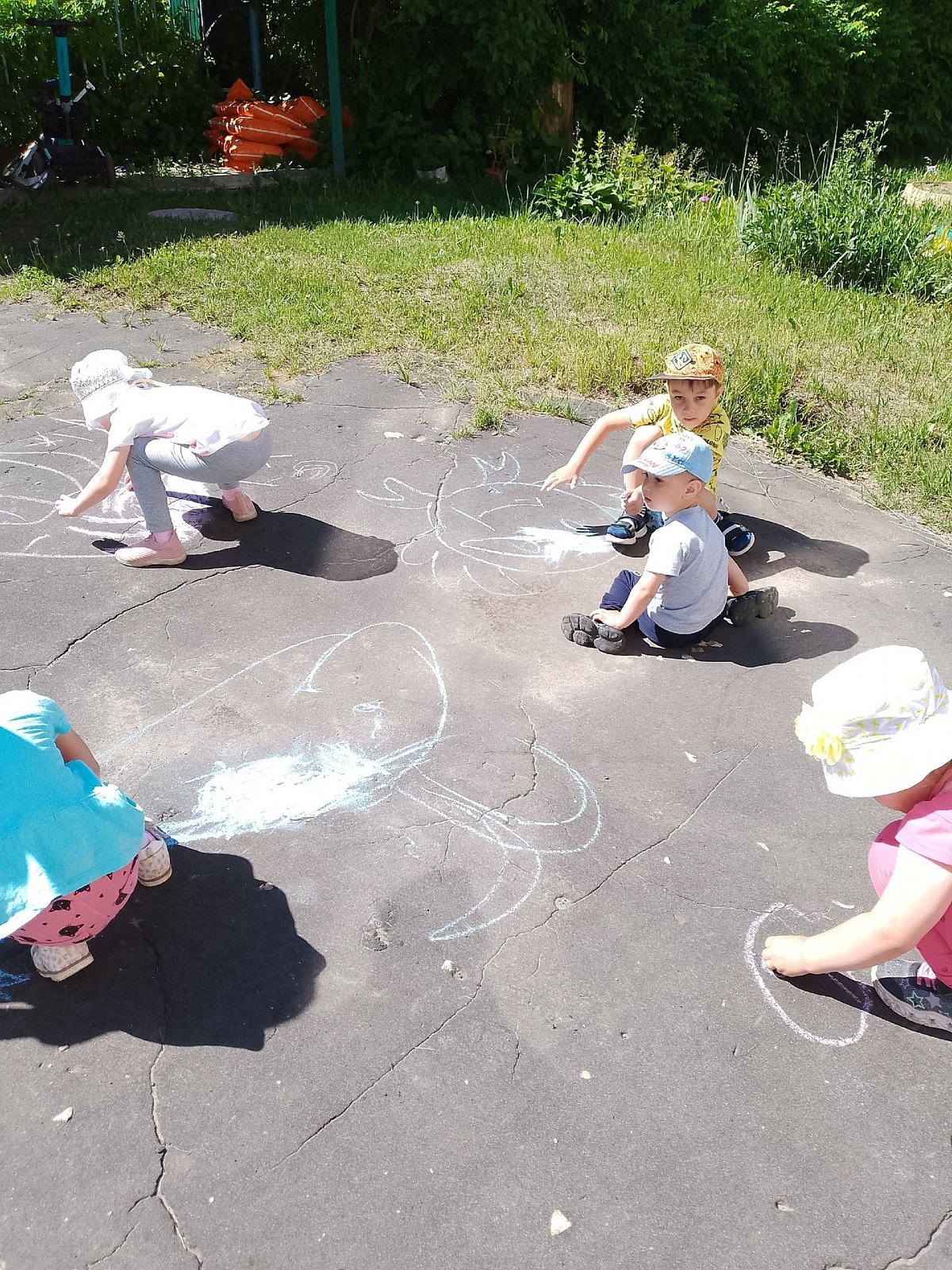 Рисование цветными мелками на асфальте является не просто веселым занятием во время прогулки. Это же настоящее творчество, кроме этого, ребенок таким образом познает окружающий мир. Большинство работ – картин на асфальте, получаются коллективными. Причем дети начинают рисовать каждый свой рисунок. Уже в процессе рисования, обсуждая между собой каждый свой рисунок, у детей интереснейшим способом получается один общий сюжет. Асфальт для них в этот момент становится большим полотном для их творчества, воображения которому нет конца. Это прекрасно, воображению детей нет предела.