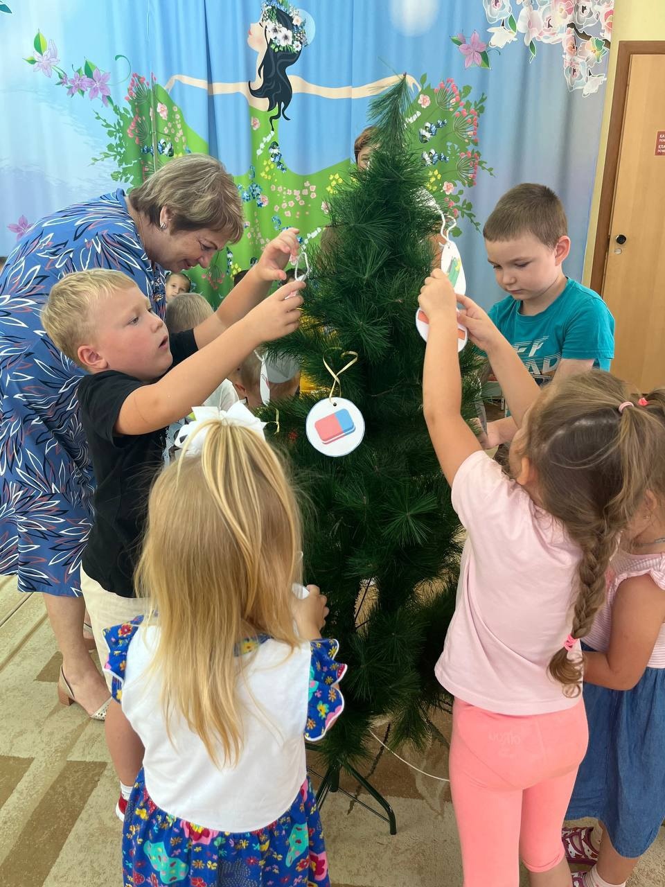 Праздник начался под веселую игру «Лавата». Затем в гости к ребятам пришла озорная Шапокляк с ёлкой. Ребята с большим удовольствием отгадывали загадки, и украшали ёлку, но не шариками ,а школьными принадлежностями. Елка получилась не новогодняя, а учебная.