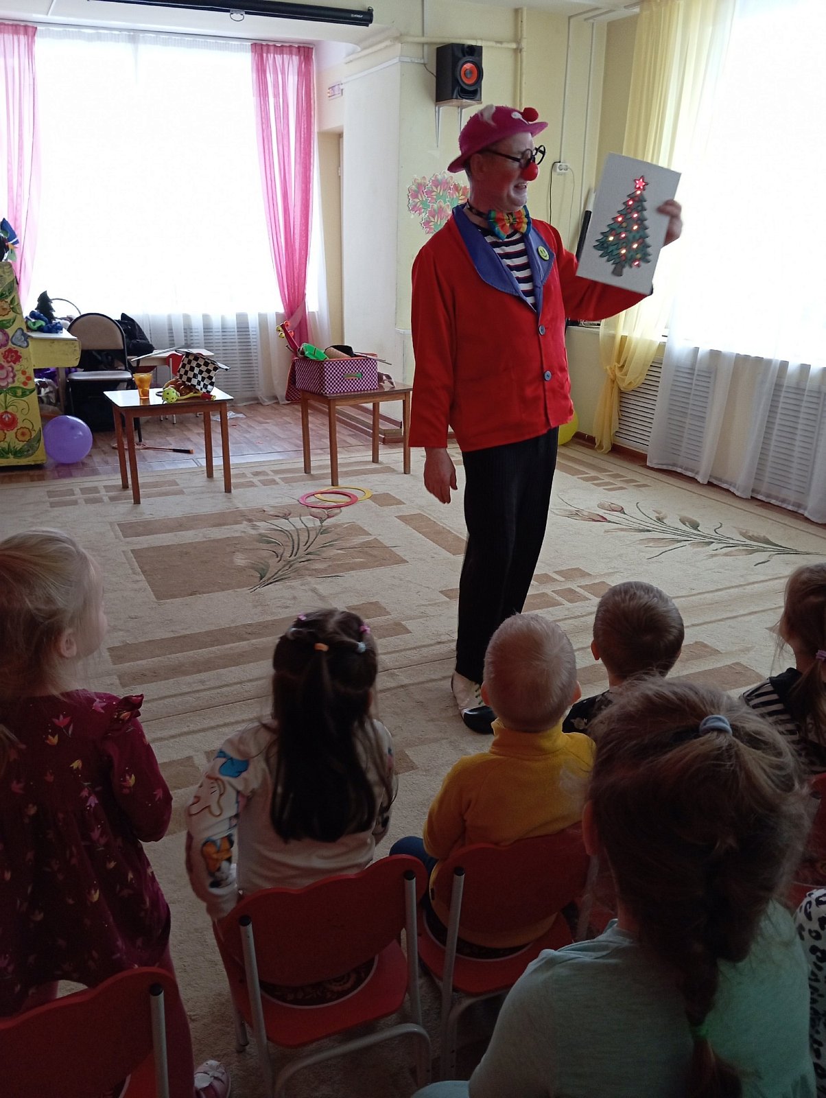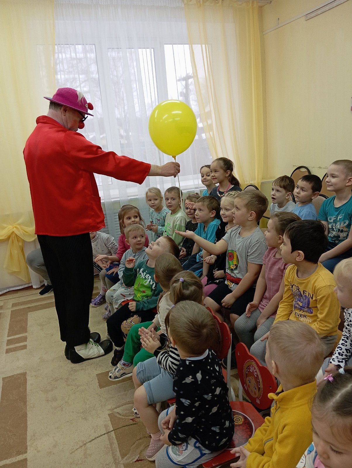 Сегодня в детском саду было весело! К нам приехал веселый клоун со своими смешными шутками и забавными играми. Дети были в восторге от его забавных костюмов и ярких красок.