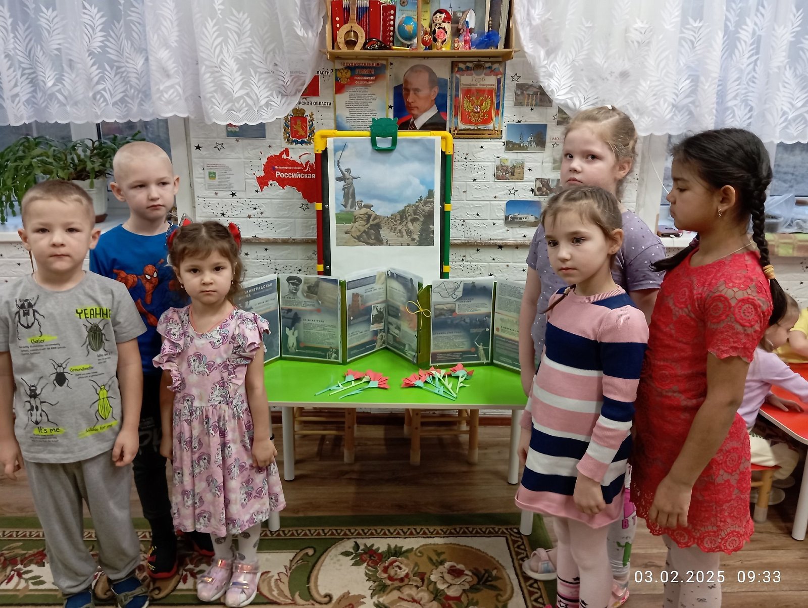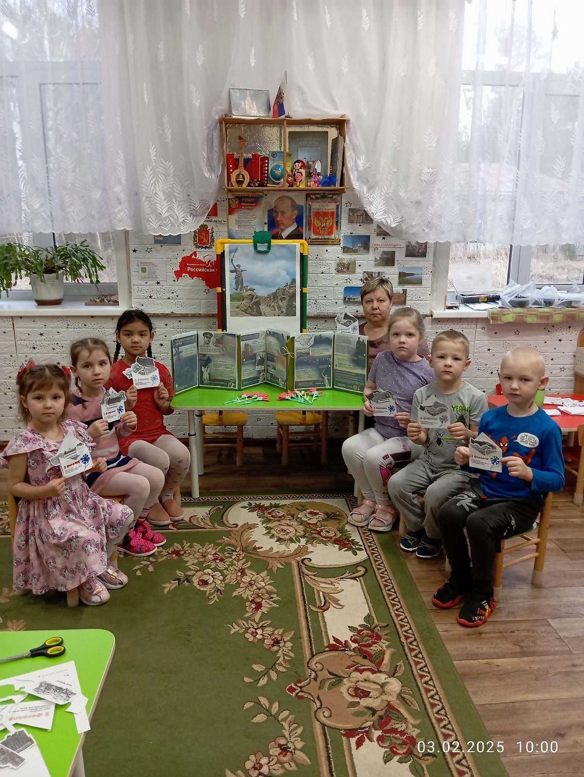 Воспитанники старше –подготовительной подгруппы «Родничок» посмотрели презентацию о Сталинградской битве, подготовленную художественным руководителем ДК д. Вышманово Кондрашовой Е.Д. ,о подвиге русских солдат, о важности этого события в Великой Отечественной войне. После этого дети сделали цветы гвоздики и возложили их около стенда ,посвященного этому событию.