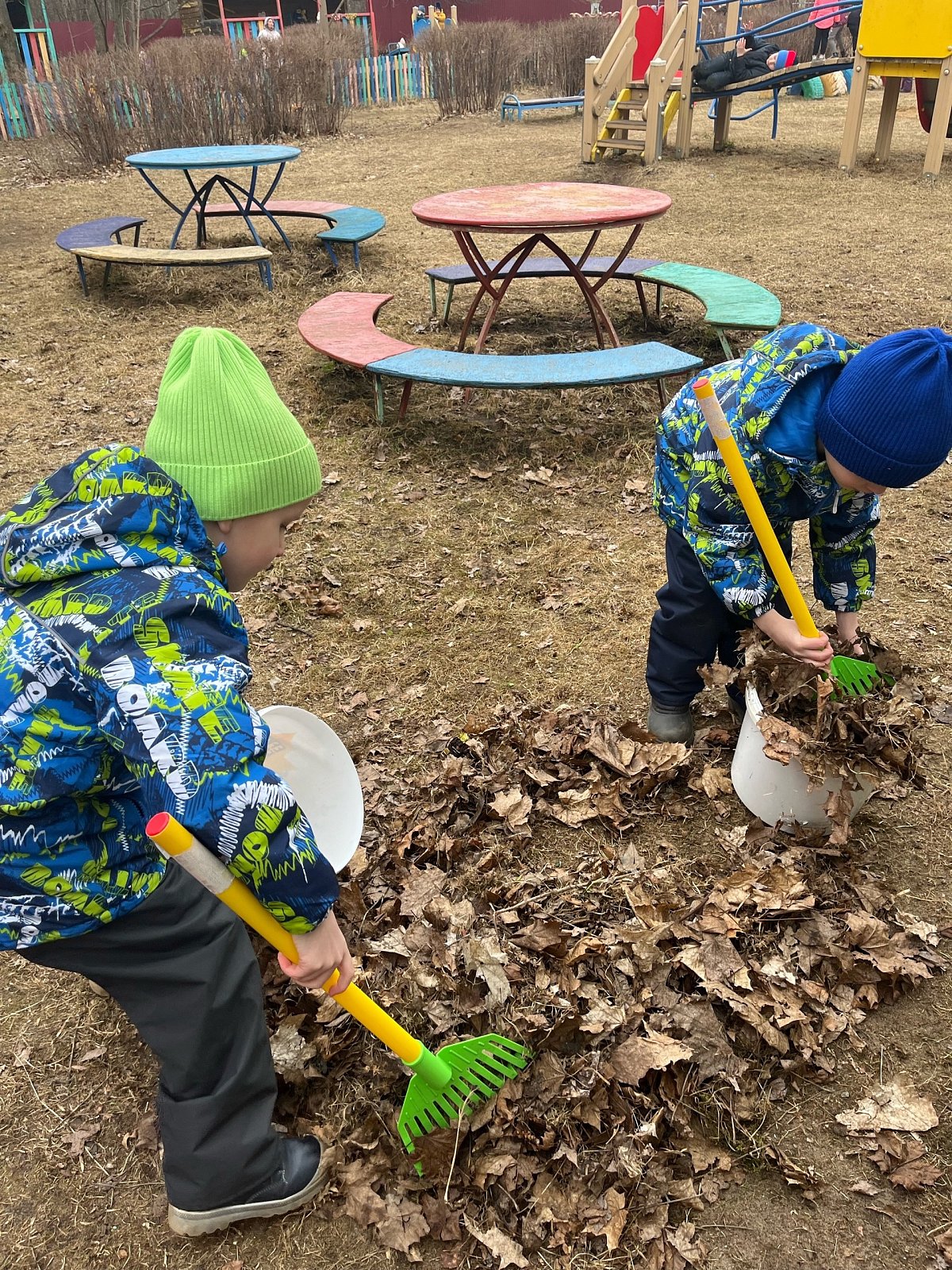 Весна — время обновления и преображений. Именно поэтому с 15 марта по 15 апреля в нашем районе проводится традиционный весенний месячник по санитарной очистке и благоустройству территории. Дети старше-подготовительной группы вместе с воспитателем уже приняли активное участие по очистке своего участка от листьев и мусора.
