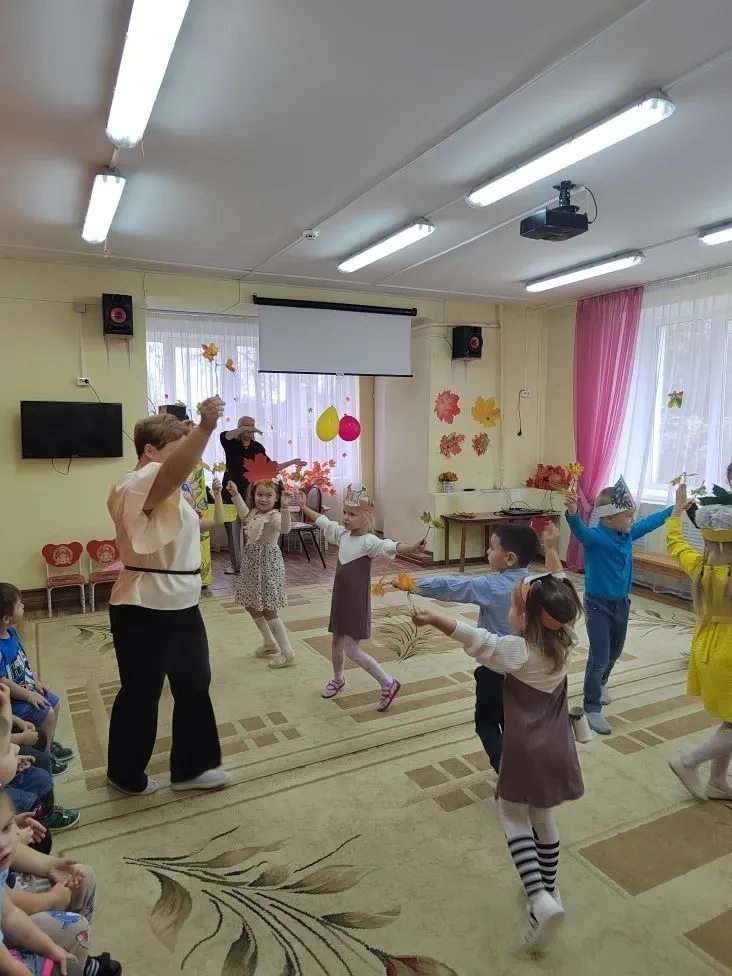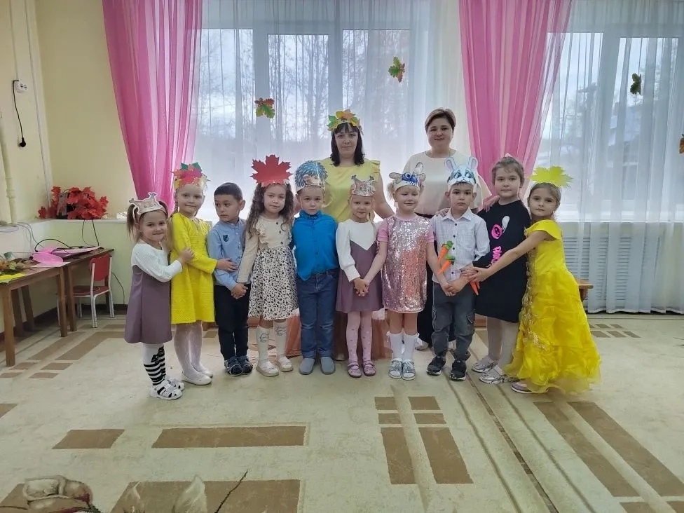 На праздник к ребятам приходила в гости красавица «Осень» с дочками Сентябриной, Октябриной, Ноябриной. Ребята с удовольствием танцевали, пели и рассказывали стихи Осени. Дети на празднике представили сценку «Стрекоза и Муравей» — басня И. А. Крылова»..