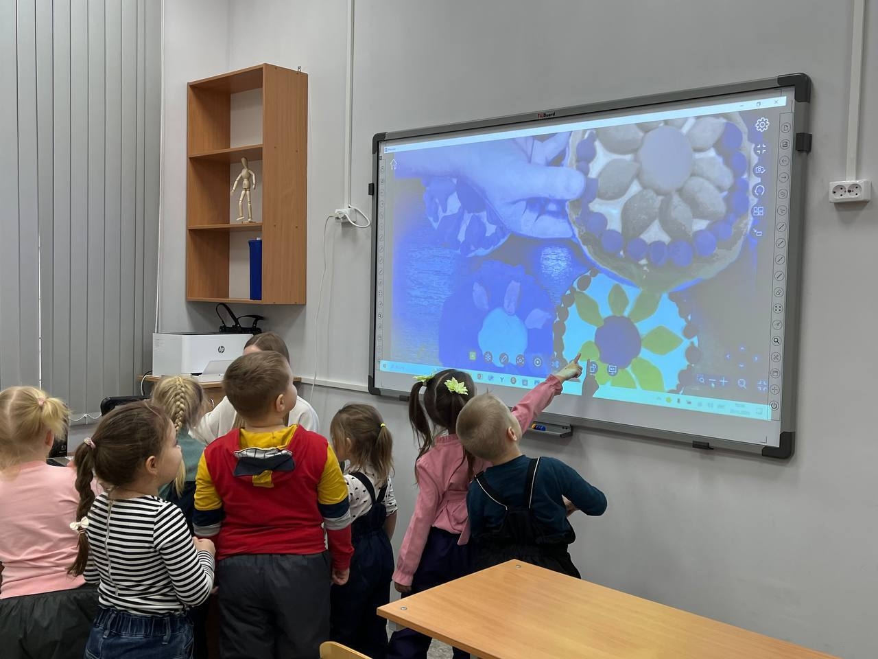 После мастер-класса ребят ждала увлекательная выставка картин. Они с восхищением рассматривали картины, узнавали о техниках и материалах, которые используют художники.